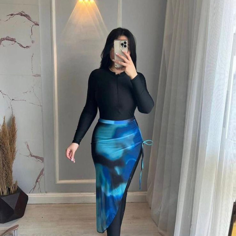 بوركيني 2 بياس بأكمام طويلة وسحاب أمامي،